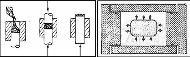 干壓及冷等靜壓成型示意圖